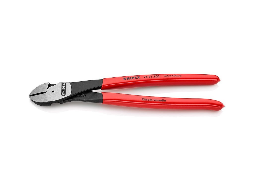 Pro nejvyšší, trvalé namáhání. Vysoký řezný výkon při vynaložení nepatrné síly díky optimálnímu přizpůsobení úhlu břitů a převodového poměru. Precizní břity dodatečně induktivně tvrzené (tvrdost břitů asi 64 HRC) pro všechny druhy drátů včetně pružinového drátu. Chromvanadová vysoce výkonná ocel, kovaná, kalená v oleji. Boční štípací kleště dlouhé 250 mm jsou vhodné pro měděné vodiče do průřezu 16 mm? a hliníkové vodiče do průřezu 35 mm?.