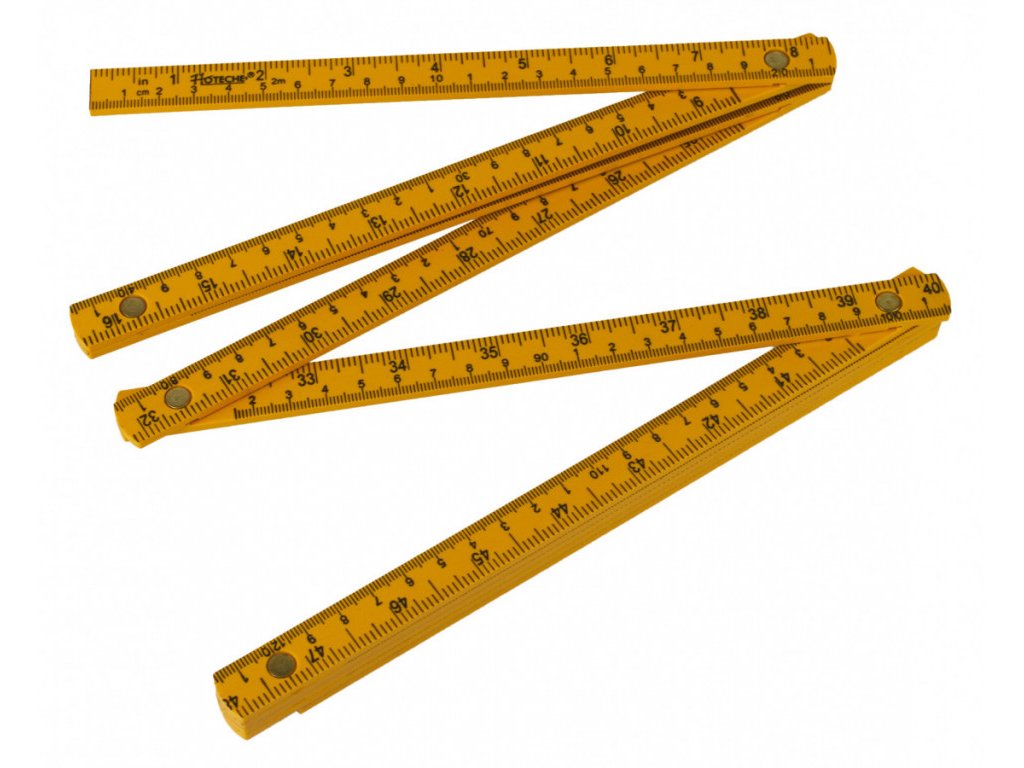 Plastový skládací metr od značky Hoteche s celkovou délkou 2 m.
