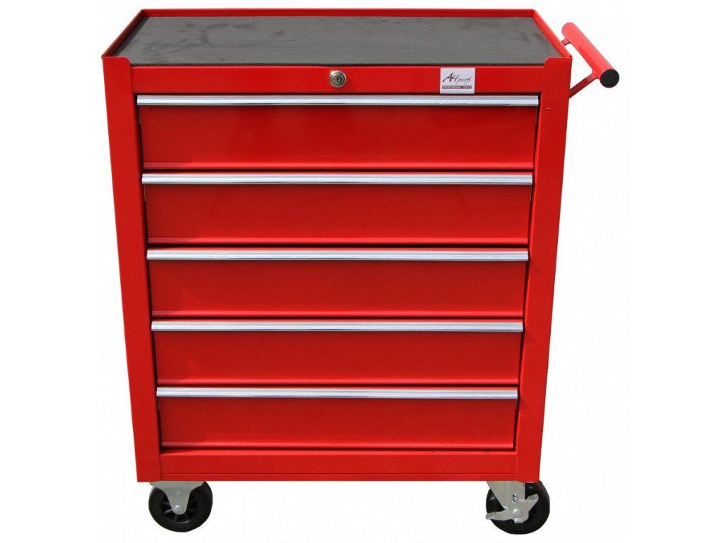 Profesionální pojízdná celokovová skříňka, 5 uzamykatelných zásuvek s kuličkovými pojezdy, 4 kolečka, madlo pro manipulaci.