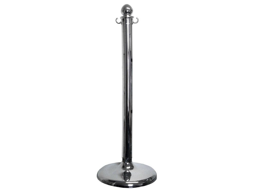 Chromovaný ohrazovací sloupek, výška 960 mm, průměr 65 mm, průměr podstavce 360 mm.