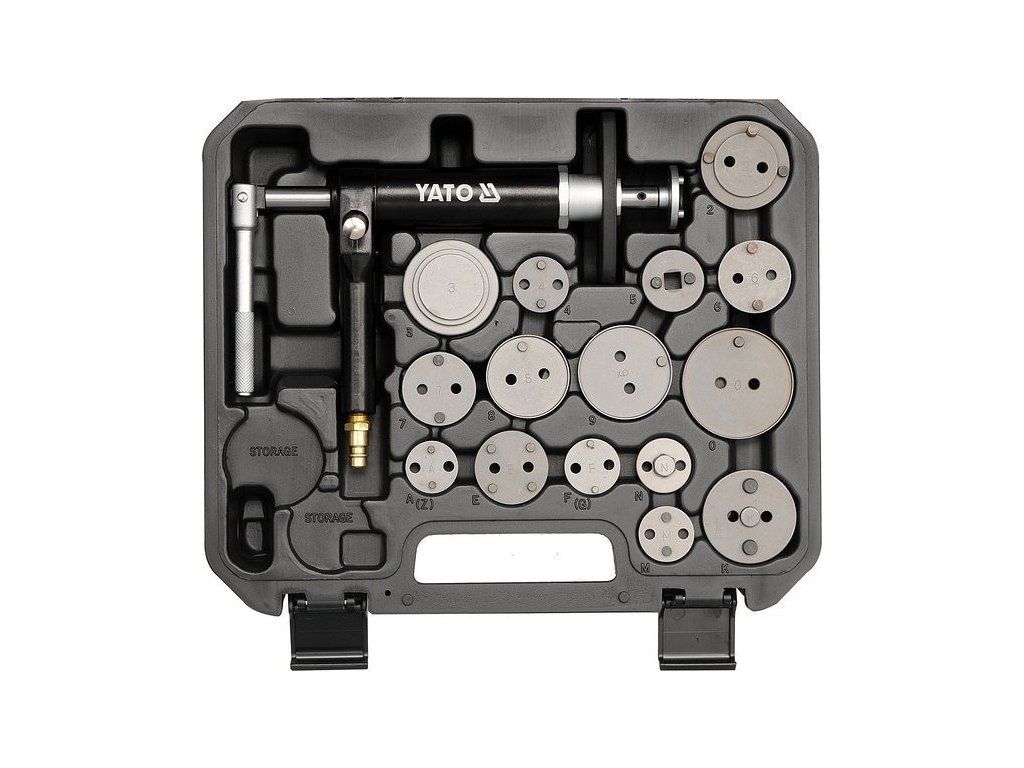 Pneumatická sada k montáži kotoučových brzd, dodávána v plastovém kufru, celkem 16 kusů, pro běžné značky vozů.