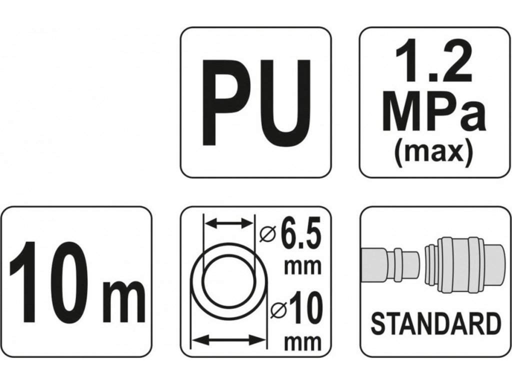 Spirálová vzduchová hadice 10m, PU průměr vnitřní 6,5mm, vnější 10mm - YT-24205