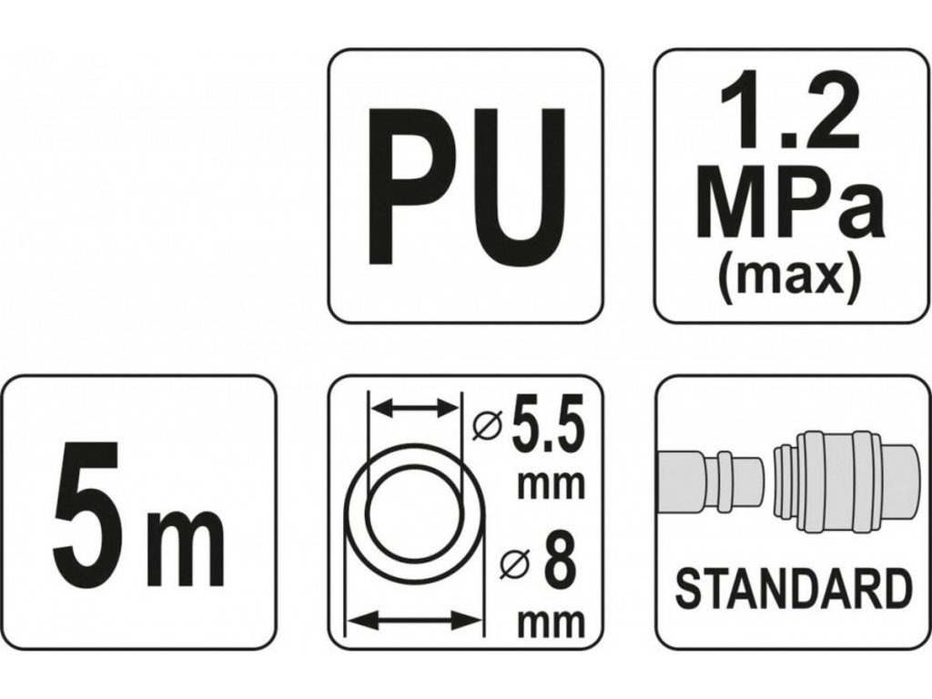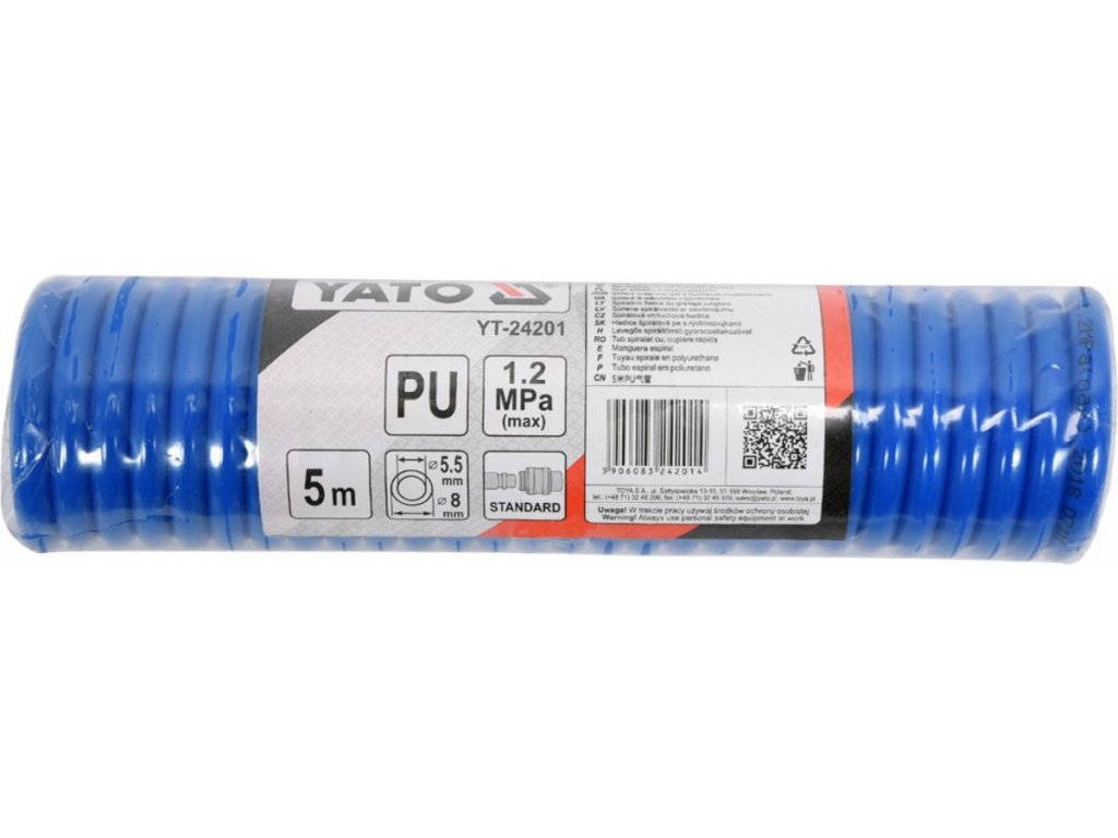 Spirálová vzduchová hadice 5m, PU průměr vnitřní 5,5mm, vnější 8mm - YT-24201
