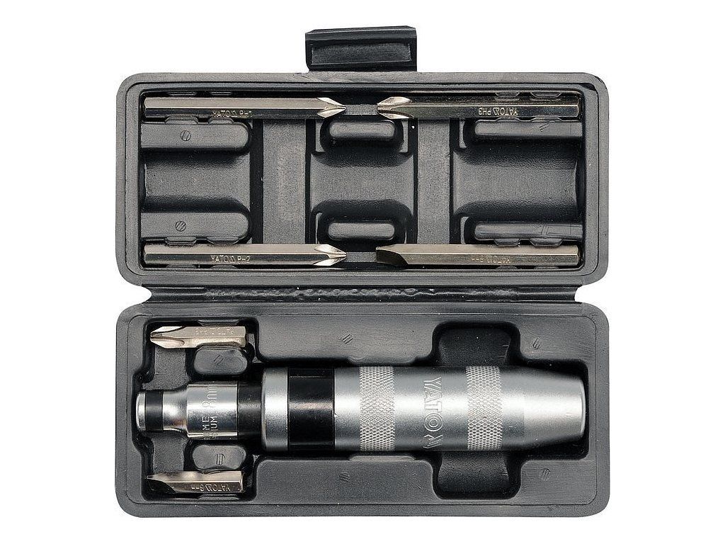 Úderový šroubovák s šesti variantami velikosti hrotů křížový/plochý.