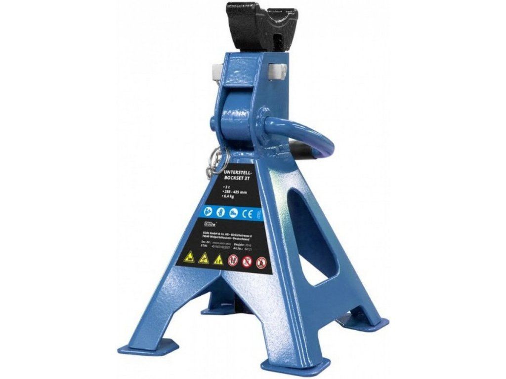 Kompaktní ocelové podpěry, určené k zajištění zvednutých vozidel, strojů apod. v podmínkách garáží, dílen, servisů atp.