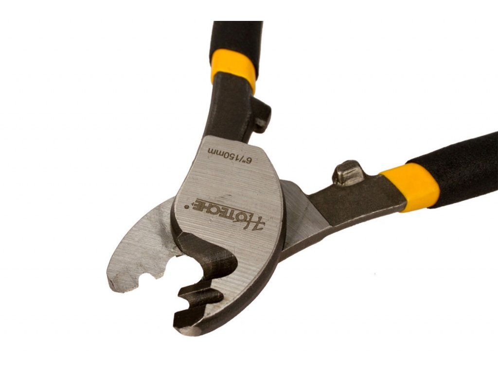 Kabelové nůžky o délce 165 mm. Dvě drážky na měděné a hliníkové kabely o průměru 3,5 a 7,5 mm. Není vhodné s těmito nůžkami stříhat ocelové dráty.