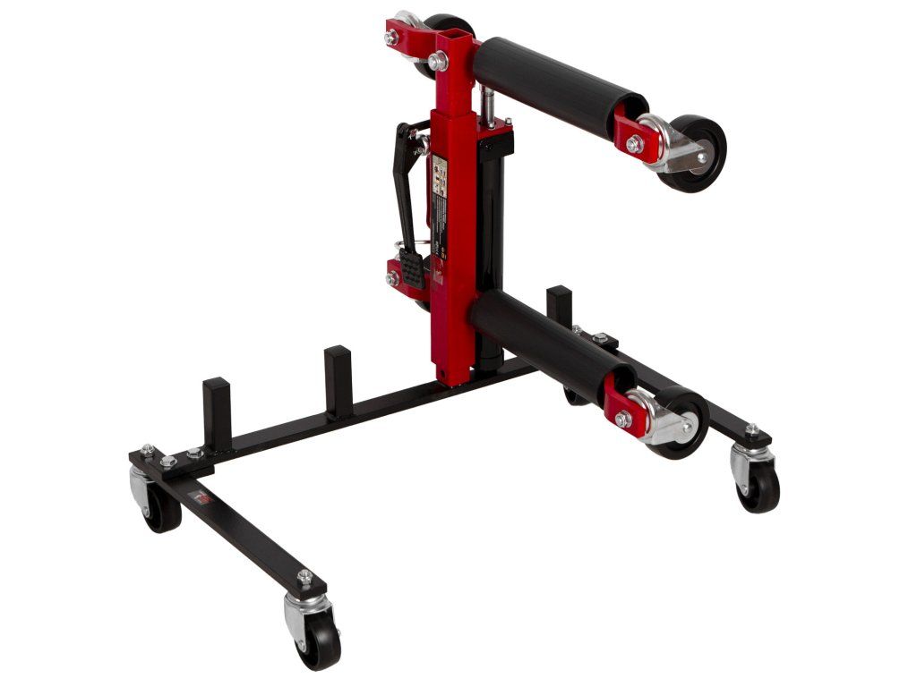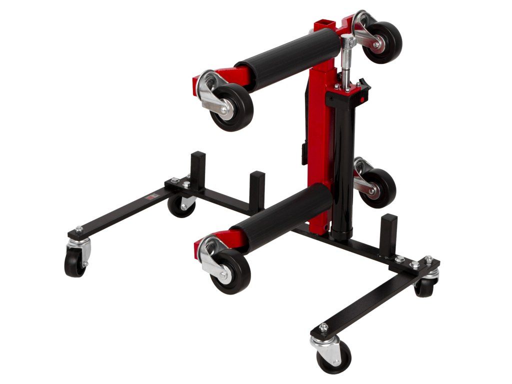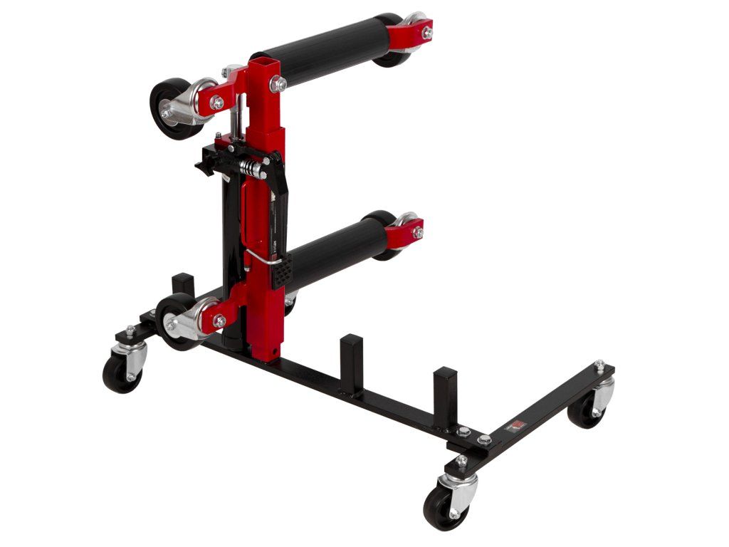 Vozík pojme až 4 kolové zvedáky a zajišťuje jejich snadné a pohodlné uskladnění nebo přesun.