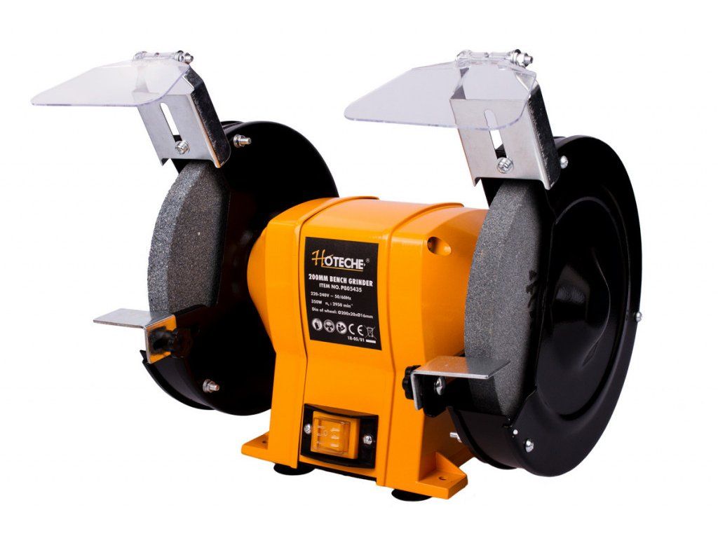 Stolní dvoukotoučová bruska značky Hoteche s dvěma brusnými kotouči o průměru 200 mm a příkonu 350 W je vhodným pomocníkem do každé dílny i garáže. Dvoukotoučová bruska je vhodná pro obrábění kovů ve dvou různých hrubostech bez nutnosti výměny kotouče. Brusné kotouče jsou hrubé a jemné zrnitosti a hravě s nimi zvládnete ostření nástrojů, broušení a leštění kovových předmětů či odstraňování zbytků materiálů. Rozměry kotoučů jsou: ø 200x20 mm a ø hřídele 16 mm.