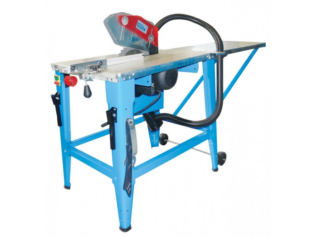 Plynule nastavitelná výška/úhel sklonu pilového kotouče 90° - 45° (→ řezy na pokos), pozinkovaný pracovní stůl (→ d x š: 800 x 553 mm), snadná manipulace díky pojezdovým kolům/výklopným transportním rukojetím.
