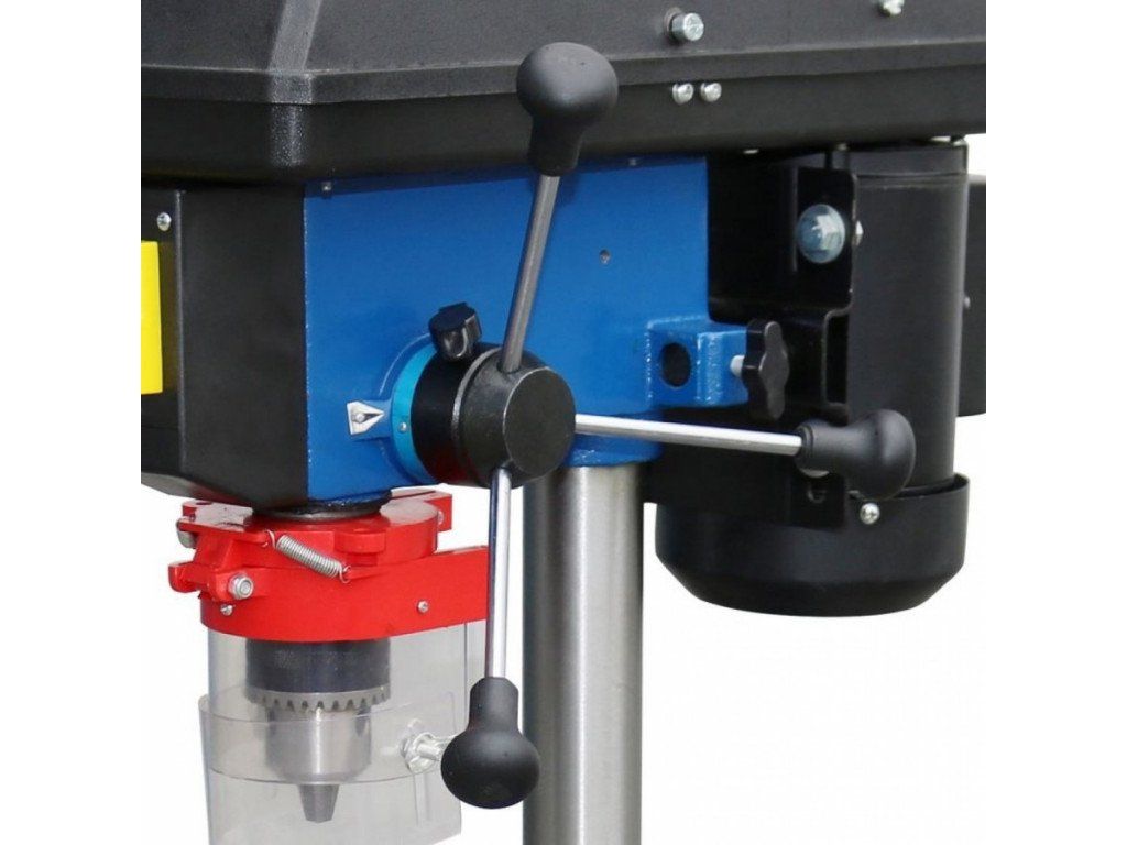 9 rychlostních stupňů otáčení vřetena (→ 500 - 2.500 ot./min.; změna otáček manuálně pomocí řemenic), vrtací hlavička pro nástroje