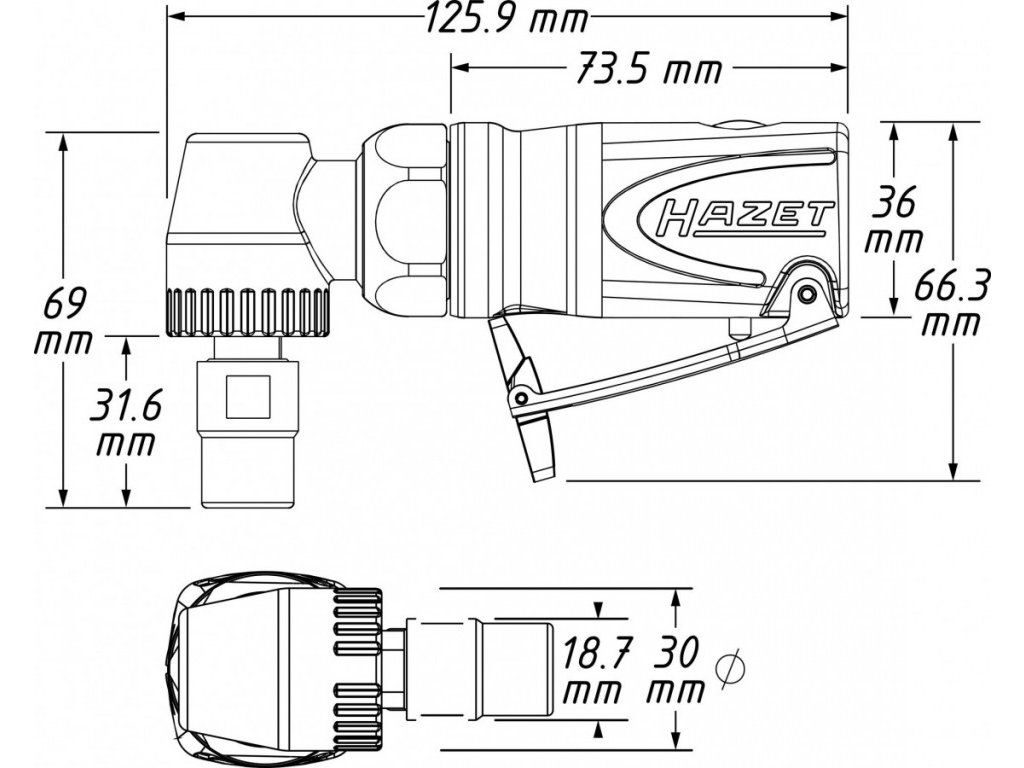 Extrémně lehká mini bruska, zahnuté provedení, 18 000 ot./min, výkon 224 W, Hazet.
