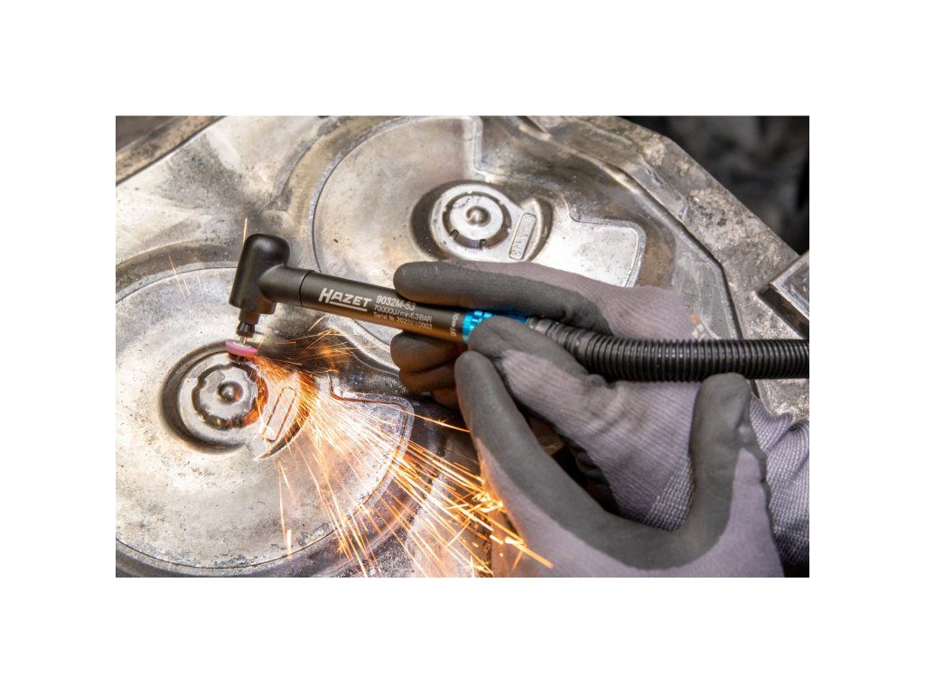 Profesionální pneumatická mikro bruska od německé značky Hazet pro přesné opracování obrobků i v extrémně stísněných podmínkách.