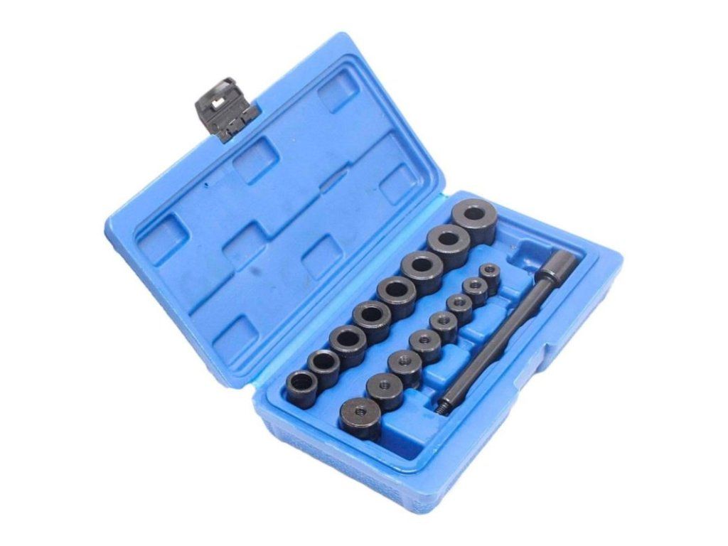 Středící trny na centrování spojky v sadě 17 kusů v plastovém boxu.