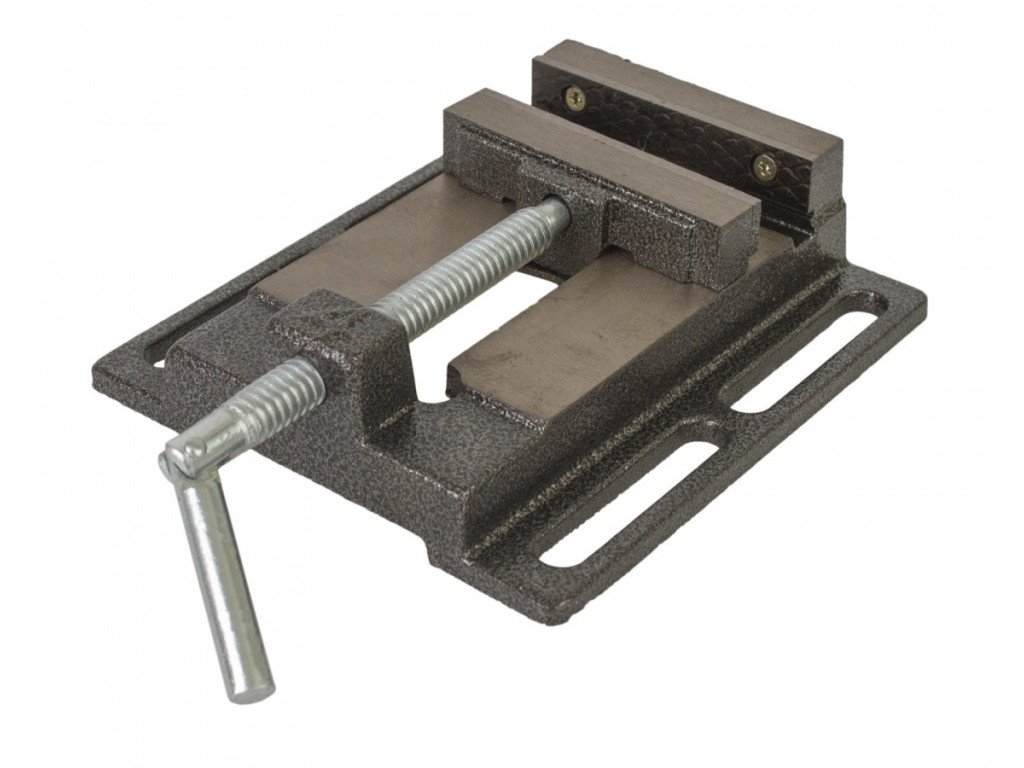 Litinový strojní svěrák, určený k montáži na pracovní stoly nebo pod stojanové vrtačky.Šířka čelistí: 100 mm.