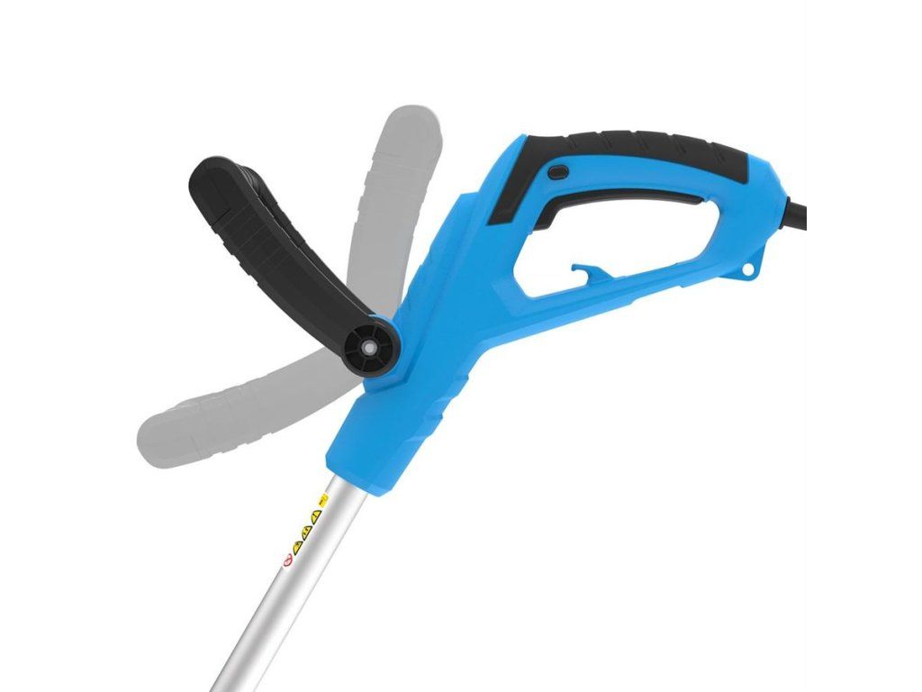 - teleskopická vodicí tyč (max. vyložení: 230 mm; včetně možného přetočení rukojeti o 180° pro svislé dosekání okrajů trávníku podél obrubníků, palisád, bazénových lemů atp.).