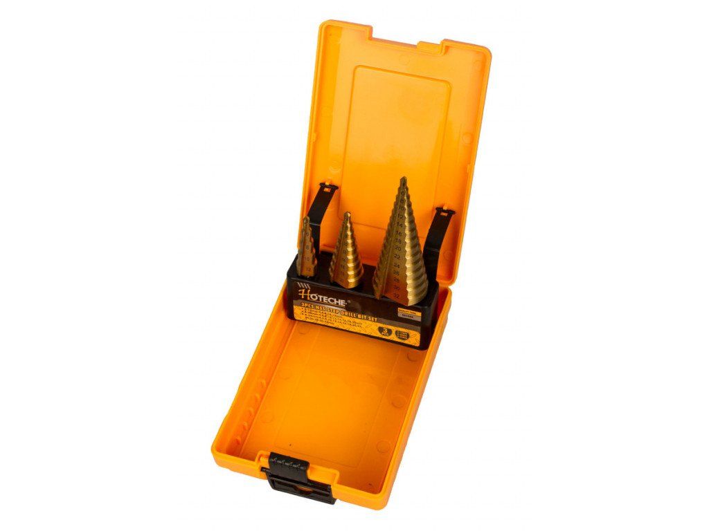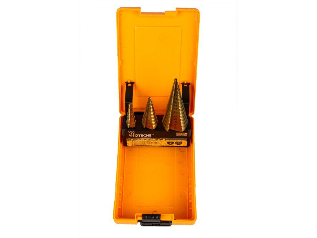 Stromkové vrtáky v sadě 3 kusů v plastovém boxu. Vhodný pro vrtání do tenkých materiálů (plechy apod.) – nedochází k „zakousnutí" a odchylkám kruhovitosti jako u běžných vrtáků.