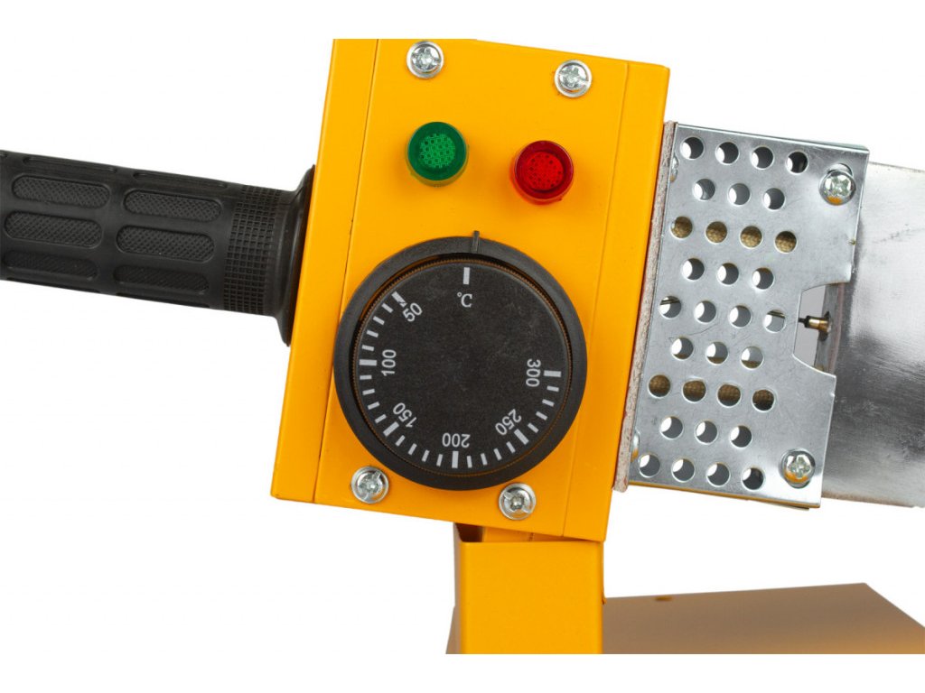 Termoregulátorem lze nastavit teplota v rozmezí 50 - 300 °C, zelená kontrolka značí probíhající zahřívání, po jejím zhasnutí je ohřev dokončen a lze svařovat. Tepelná izolace zabraňuje přenosu tepla do rukojeti