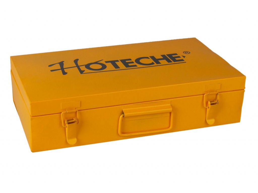 Praktická instalatérská sada v plechovém kufříku obsahuje polyfúzní svářečku 800W vybavenou termoregulátorem, 6 nástavců Ø 63, 50, 40, 32, 25 a 20 mm, stojan a příslušenství.