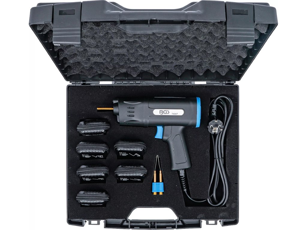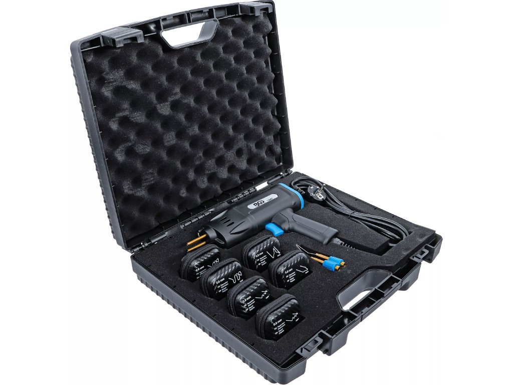 Svářečka plastů s výkonem 75 W určená na opravu prasklin nebo ulomených částí plastových dílů.