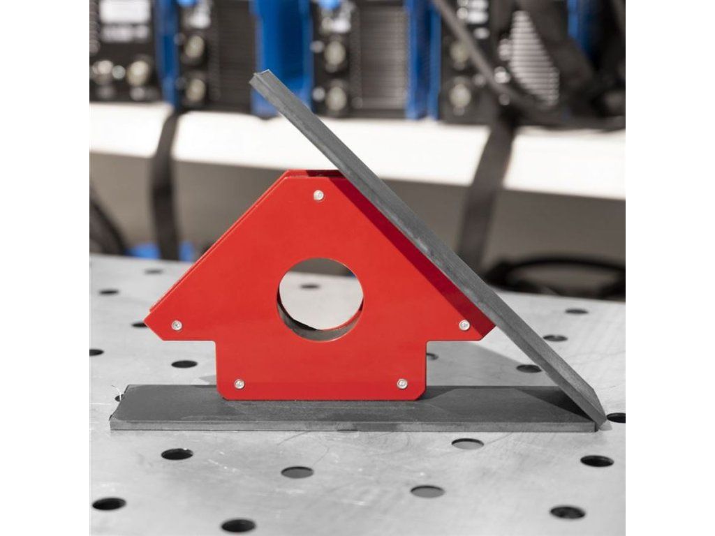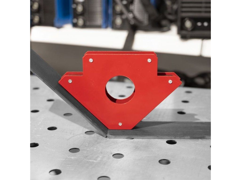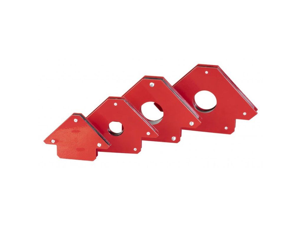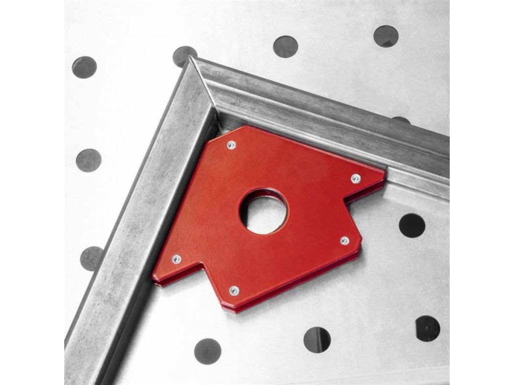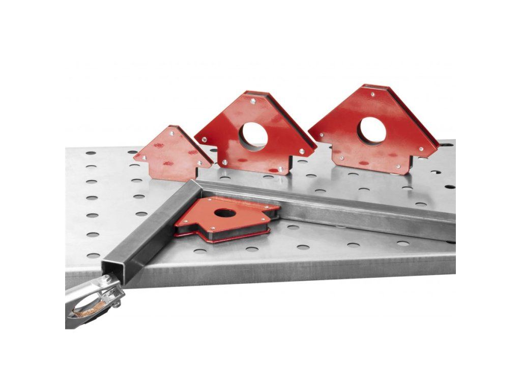 Úhlové magnety na svařování, feritové magnety v lakovaných ocelových pouzdrech, rozměry od 120 x 10 x 80 mm až 200 x 20 x 130 mm, hmotnost: 3,1 kg. Přídržná síla magnetů 12, 22, 33, 50kg.