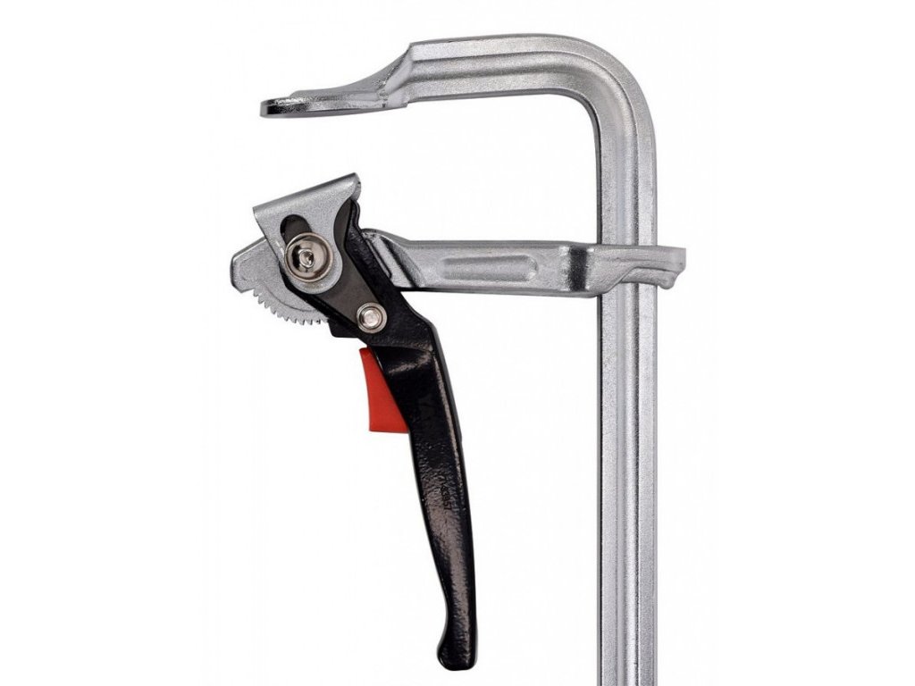 Svěrka s ráčnovým mechanismem určená pro profesionální použití v tesařství, při výstavbách, v dílnách i pro svařování.