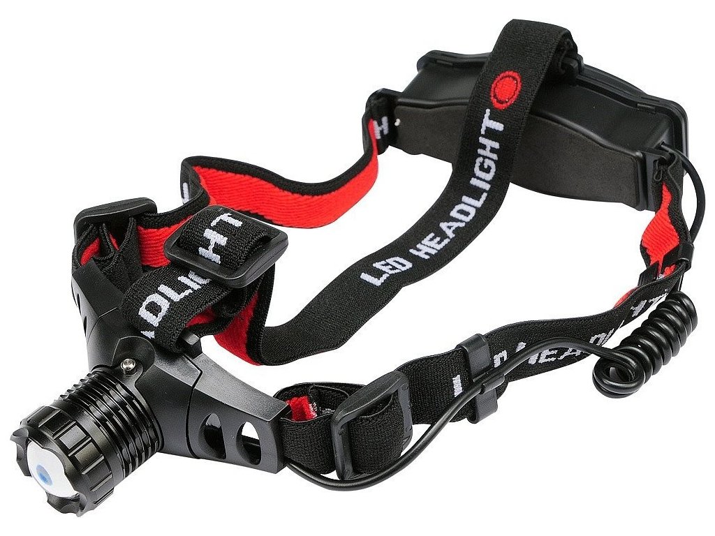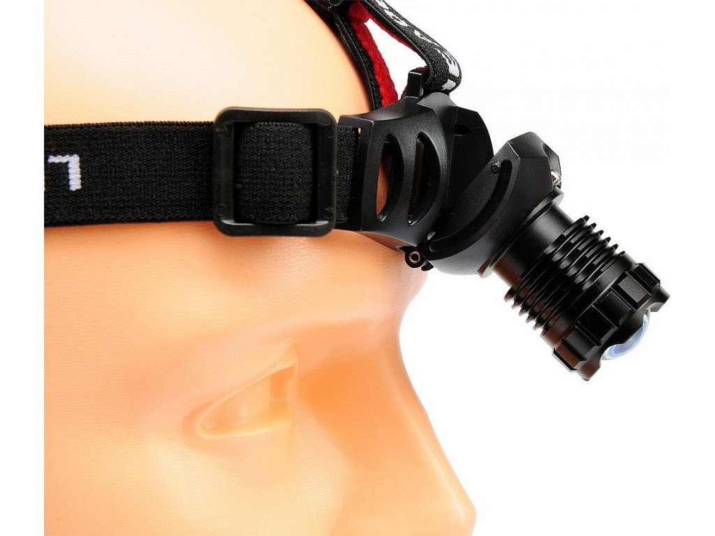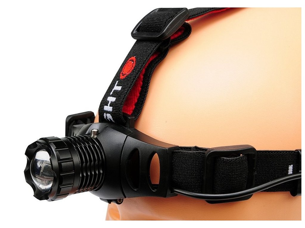 Voděodolná kapesní svítilna k upevnění na hlavu osazená LED s vysokým výkonem (CREE XPE 3W), která zabezpečuje výtečný světelný tok.