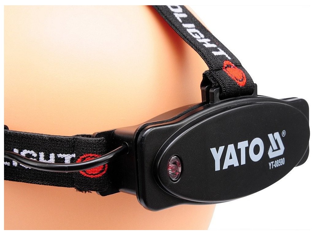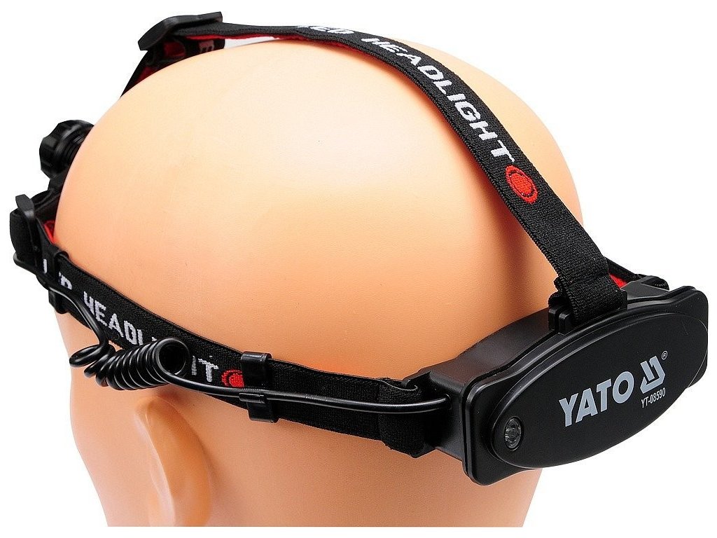 Napájení 3x baterie AAA (nejsou přiloženy) v pouzdře na zadní straně hlavy. Upevňovací popruhy na hlavu lze pomocí přezek upravit dle potřeby.
