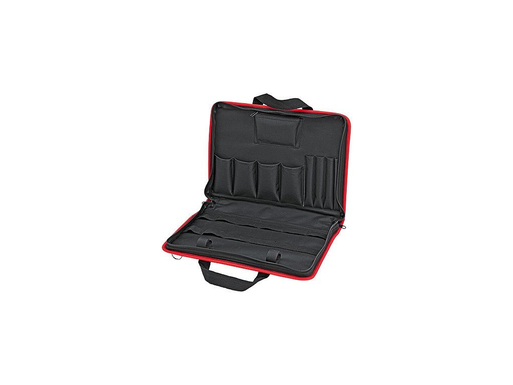 Kompaktní brašna na nářadí pro servisního technika. Vejde se do kufru KNIPEX BIG Twin 00 21 40 LE / 00 21 41 LE a jiných běžných kufrů na nářadí. S 8 brašnami na nářadí a 7 poutky na nářadí. Zpětná smyčka pro upevnění vozík. Kompaktní brašna na nářadí pro servisního technika. Z odolné polyesterové tkaniny, se zipem.