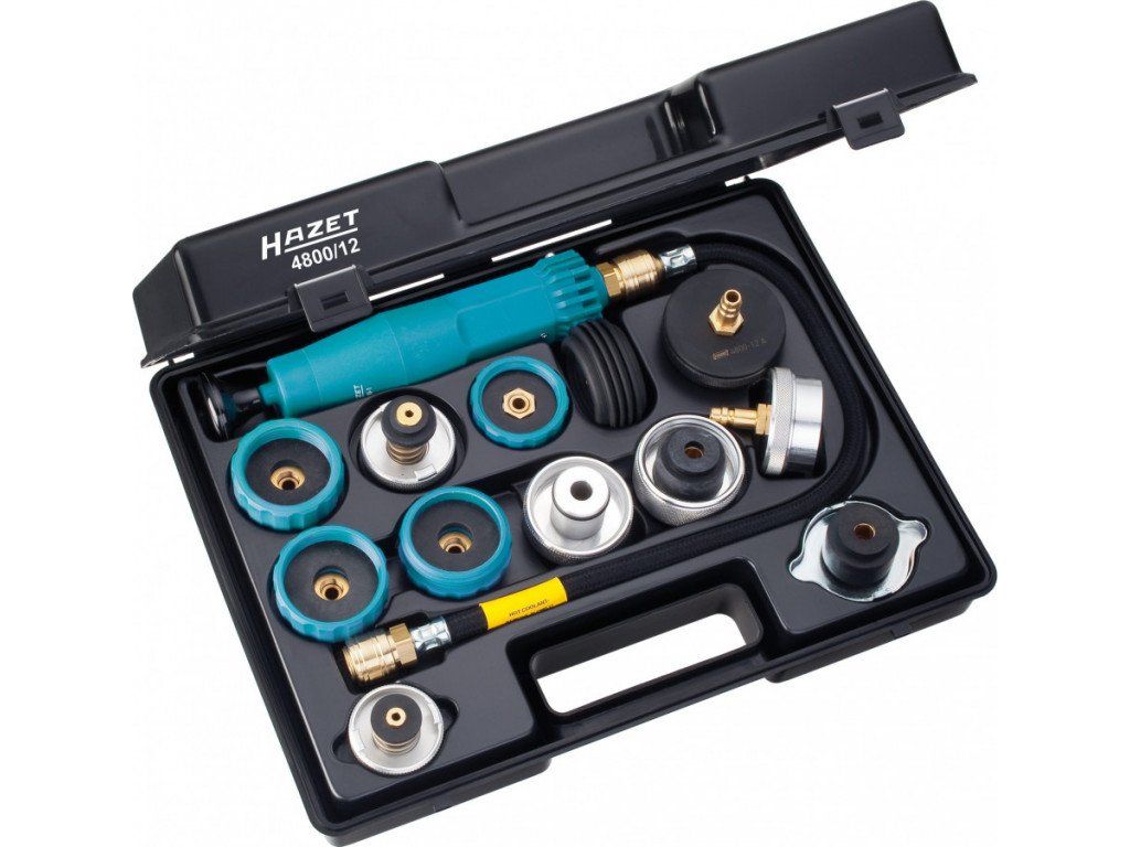 Kvalitní tester chladícího systému od výrobce HAZET, 12 kusů, včetně adaptérů.