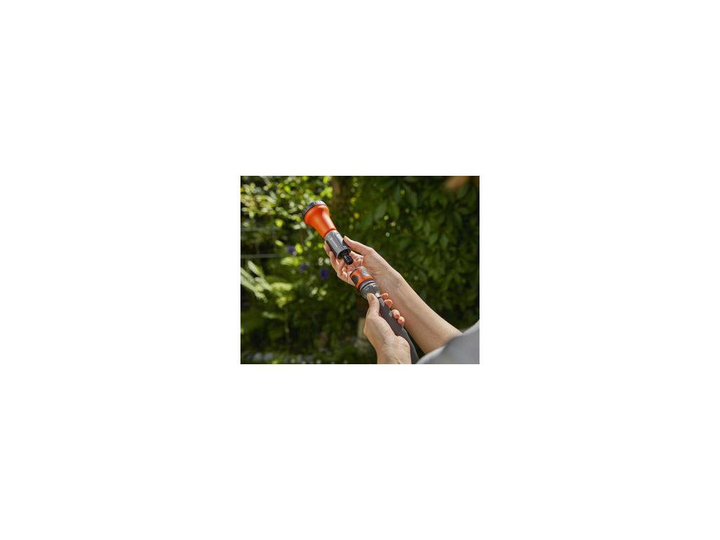 Sada je dodávána se závitovým konektorem na kohoutek, který je vhodný pro tři různé velikosti závitů, hadicový konektor, vodní uzávěr a zavlažovací postřikovač.