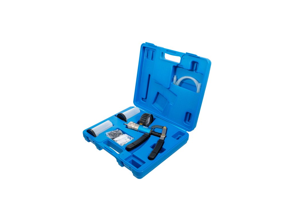 Profesionální sada pro testování tlaku, podtlaku nebo také pro odvzdušňování brzdových systémů bez nutnosti přítomnosti druhé osoby.