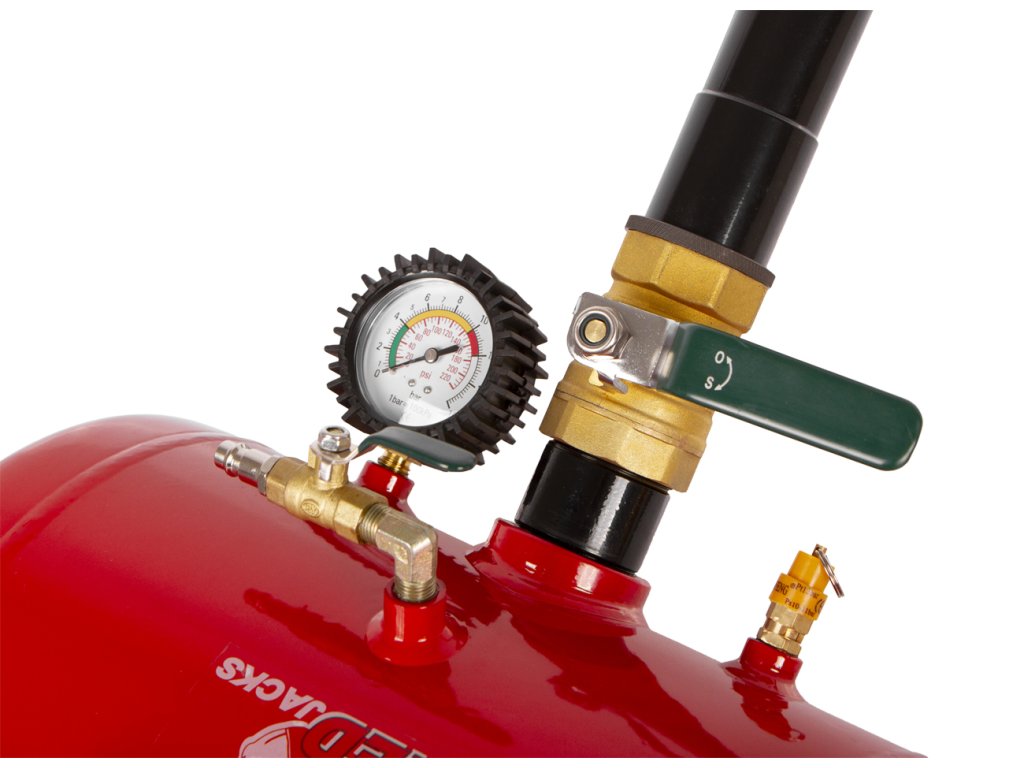 Vzduchové dělo je vybaveno nádobou o objemu 19 litrů, manometrem pro kontrolu tlaku a plnícím ventilem.