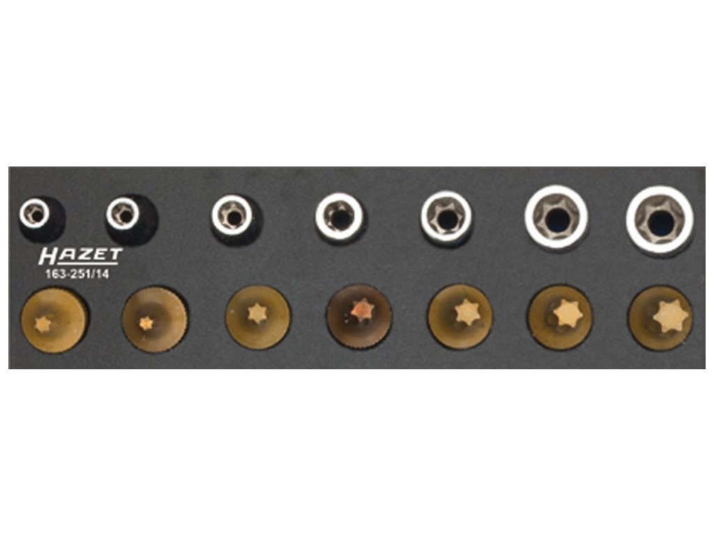 TORX sada nářadí od německého výrobce HAZET, 14 kusů v pěnové vložce, obsahuje nástrčné klíče TORX E4-E11 a šroubovákové hlavice TORX T10-T40.