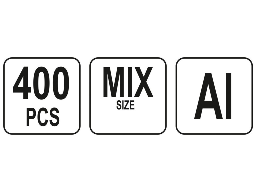 Trhací hliníkové nýty, sada 400ks (2,4; 3,2; 4,0; 4,8 mm) - YT-36420