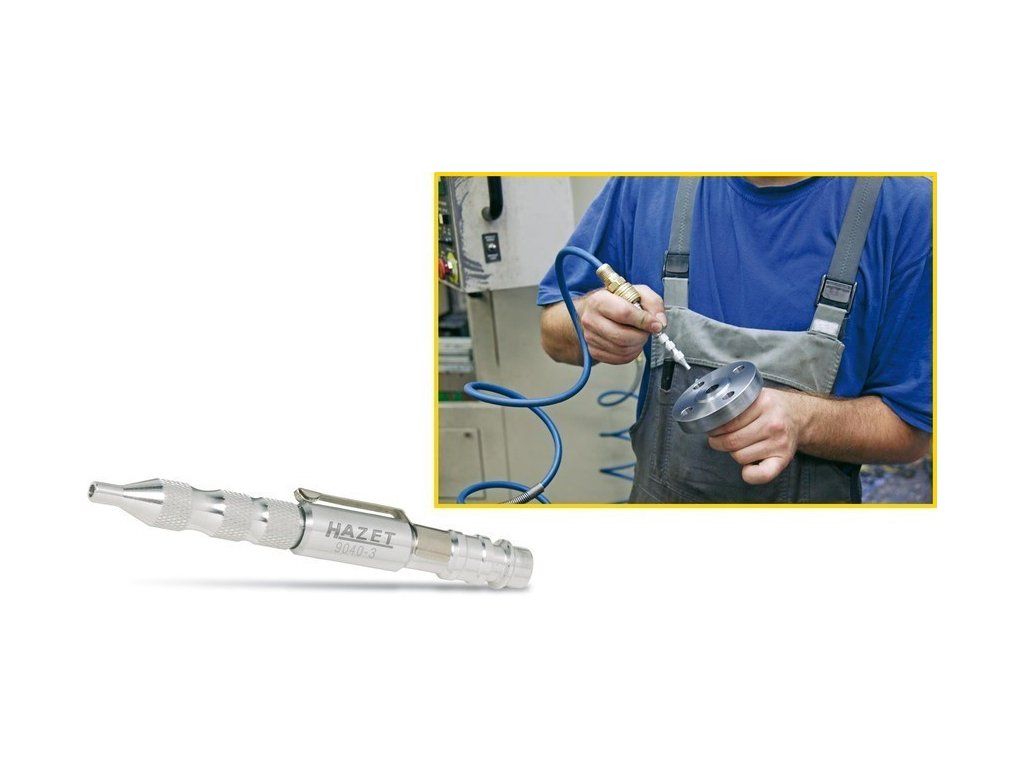 Kvalitní tužková ofukovací vzduchová pistole HAZET, se závěsným klipem, nastavitelné proudění vzduchu.