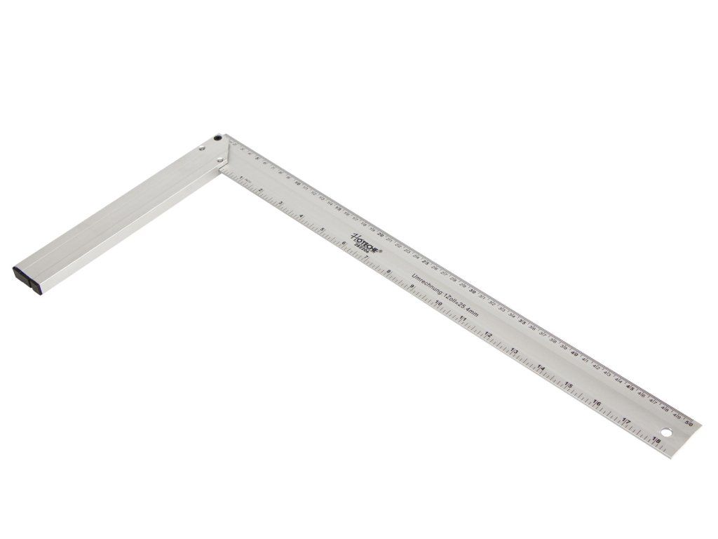 Hliníkový truhlářský úhelník o délce 500 mm.