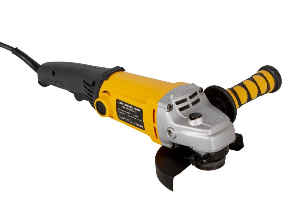 Kompaktní jednoruká elektrická úhlová bruska Hoteche s výkonem 1200 W.
