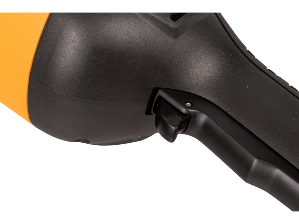 - Prodloužené tělo brusky o polohovatelnou rukojeť s dlouhým vypínačem pro pohodlnou práci.