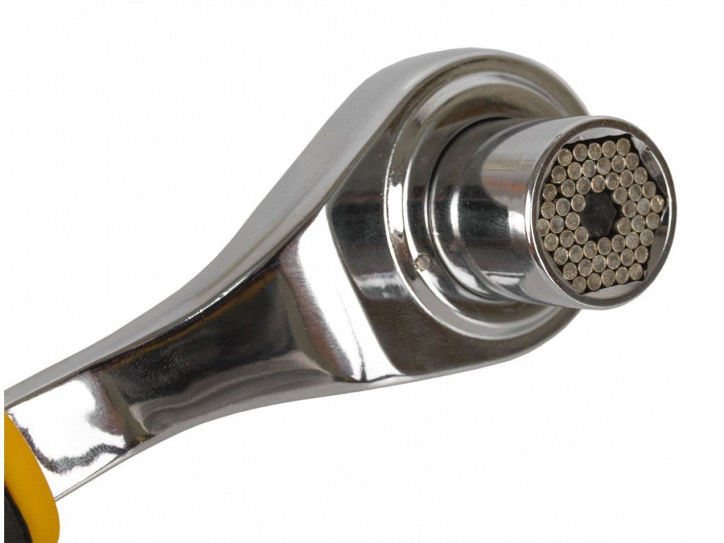 Univerzální ráčna slouží k utahování a povolování matic a šroubů v rozpětí 7–19 mm, ale také háčků, skob, křídlových matic a dalších nepravidelných tvarů.