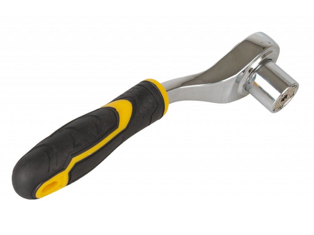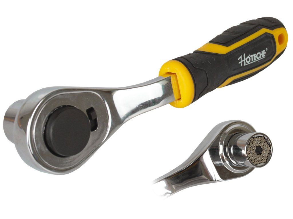 Univerzální ráčna slouží k utahování matic a šroubů o velikosti 7mm – 19mm, materiál: kov, pravý i levý chod, egonomická pogumovaná rukojeť.
