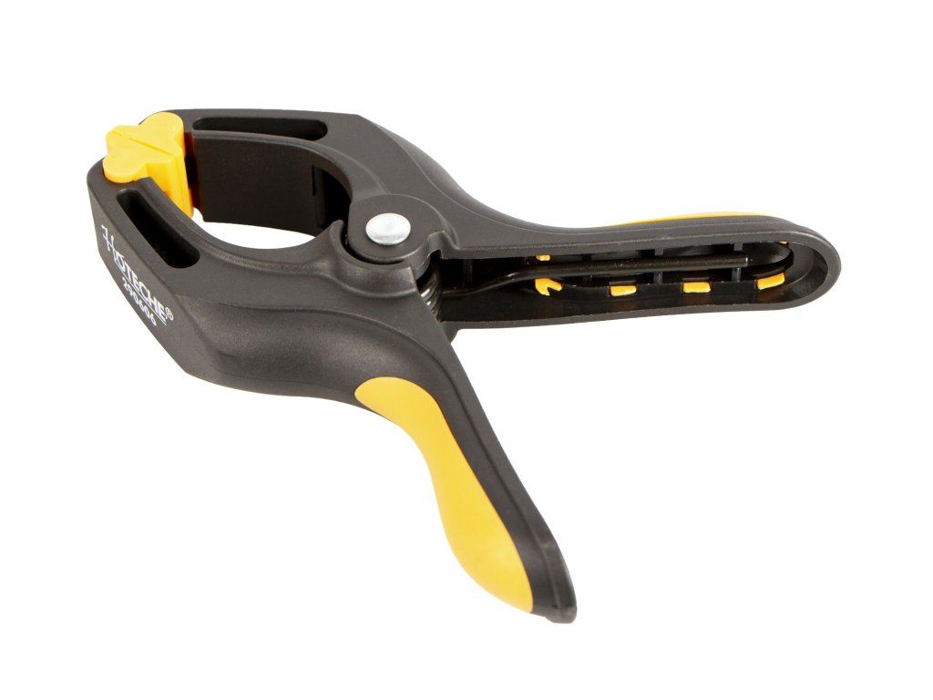 Plastová upínací svěrka od značky Hoteche s maximálním rozevřením 65 mm.