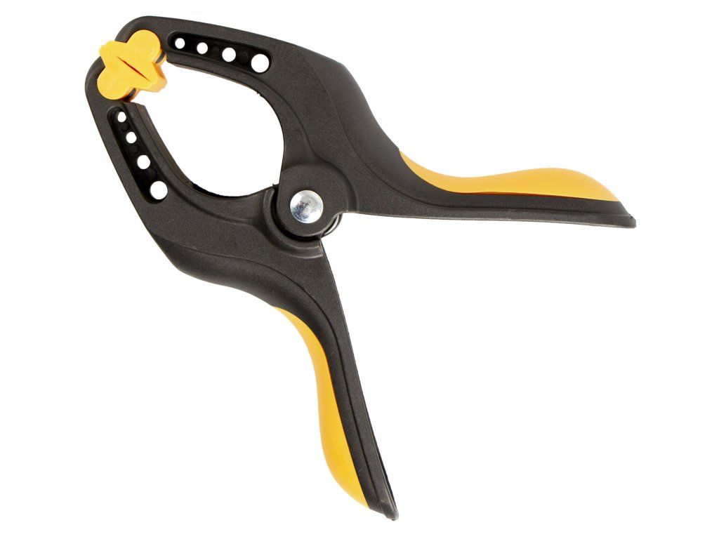 Plastová upínací svěrka s maximálním rozevřením čelistí 65 mm. Silná svírací pružina.