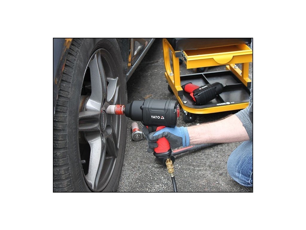 Rázový pneumatický utahovák Yato s velkým výkonem kroutícího momentu 1150Nm, s kvalitní vnitřní mechanikou se systémem TWIN HAMMER. Díky této funkci má utahovák velký kroutící moment s relativně malou spotřebou vzduchu.