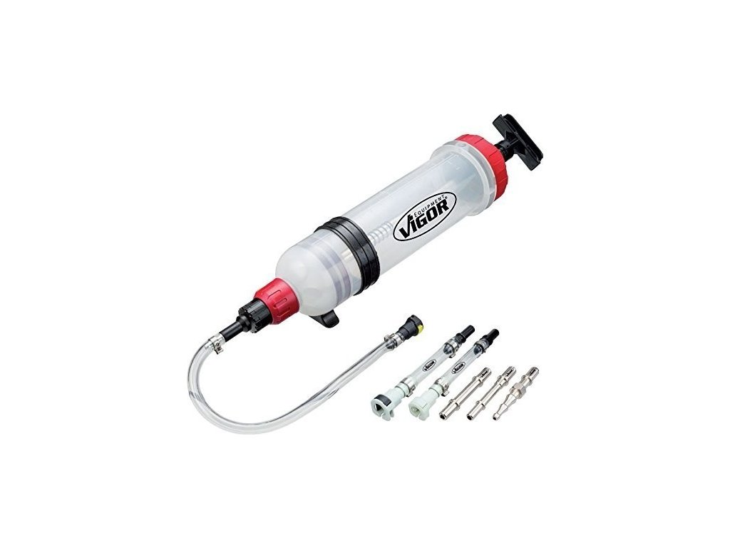 Ruční vakuové čerpadlo od německé značky VIGOR, objem 1,5 l, délka čerpadla 480 mm, délka hadičky 450 mm, obsahuje také 5 adaptérů.