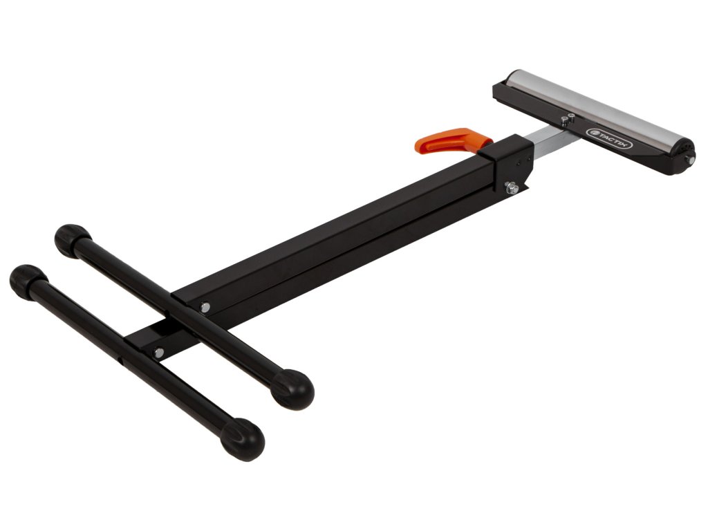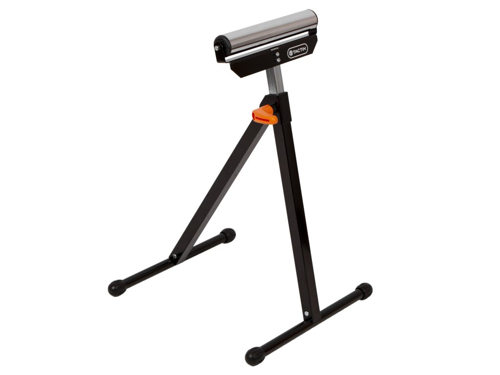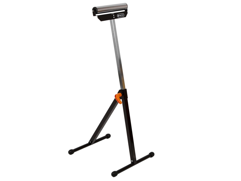 Skládací válečkový stojan TACTIX je určený pro snadnou manipulaci s dlouhými kusy materiálu při řezání, hoblování nebo jiném opracování.