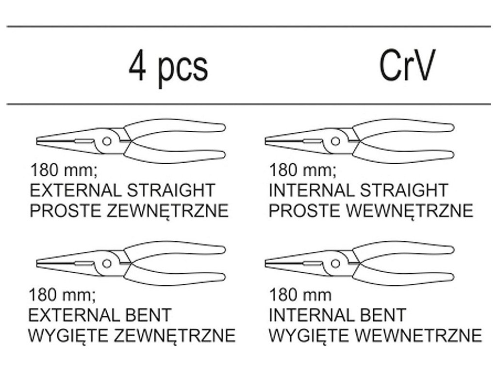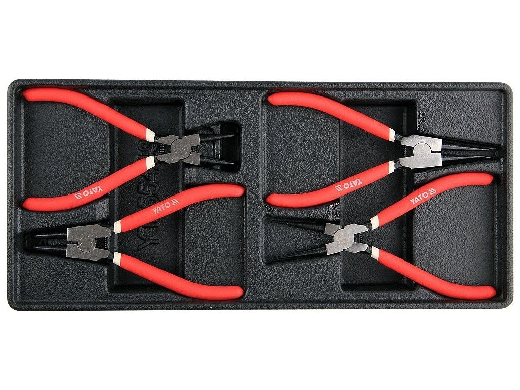 Sada 4 ks segerových kleští z CrV oceli. Sada je přehledně srovnána ve vložce do zásuvky z PVC.