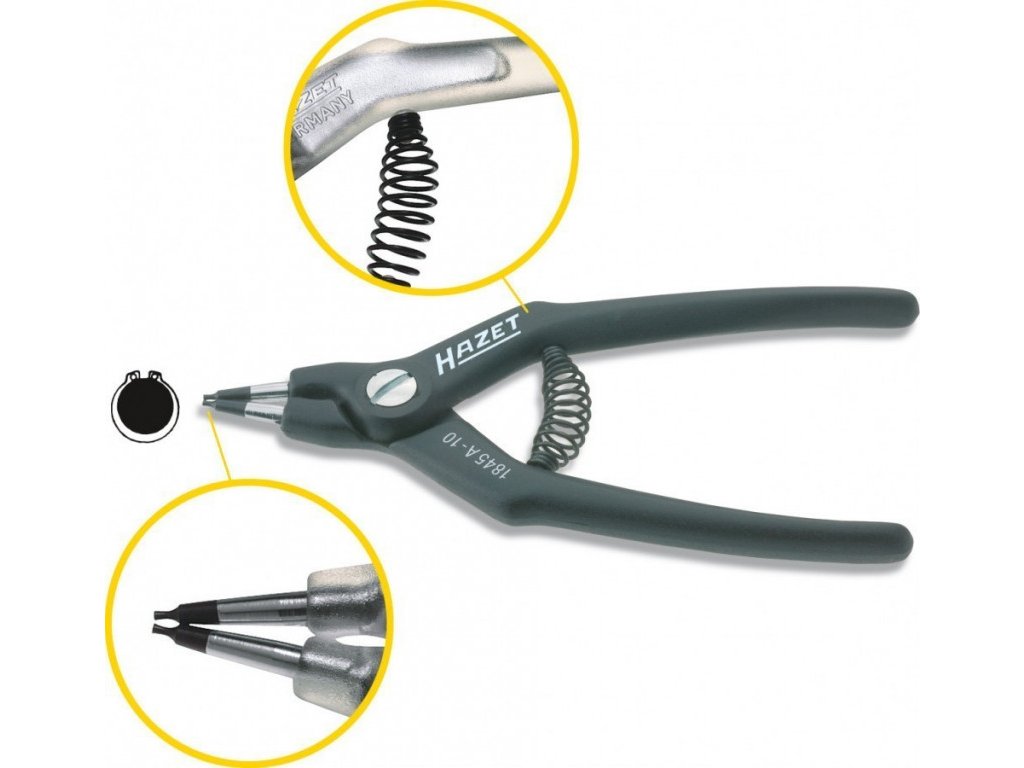 Vnější přímé kleště na pojistné kroužky o délce 140 mm. (Tvar A). Kleště s vratnou pružinou.