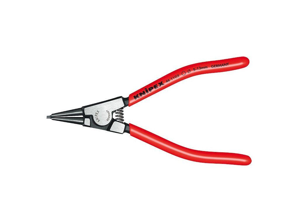 Vnější přímé kleště o délce 140 mm na pojistné kroužky, svorky rovné, kapacita pro průměr otvoru: 5 - 13 mm, stabilní hroty zabraňující sesmeknutí. Potaženo plastem.
