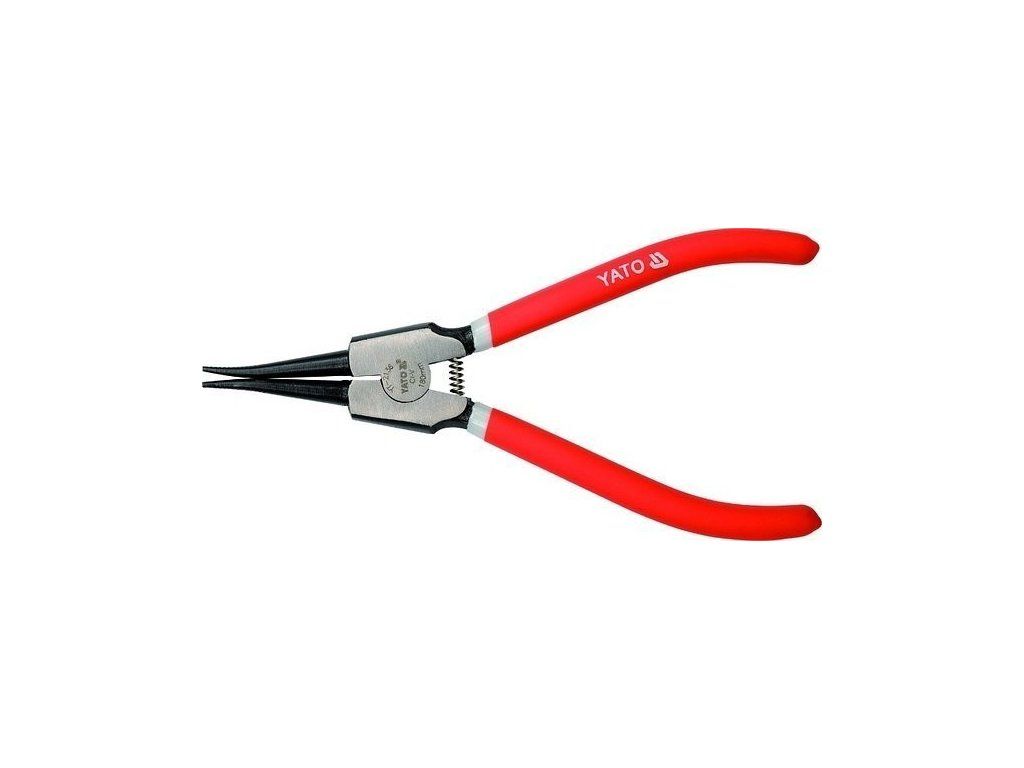 Vnější přímé kleště na pojistné kroužky. Délka 180 mm. Rukojeť potažena plastem a stabilní hroty zabraňují sesmeknutí. Kleště mají vratnou pružinu.