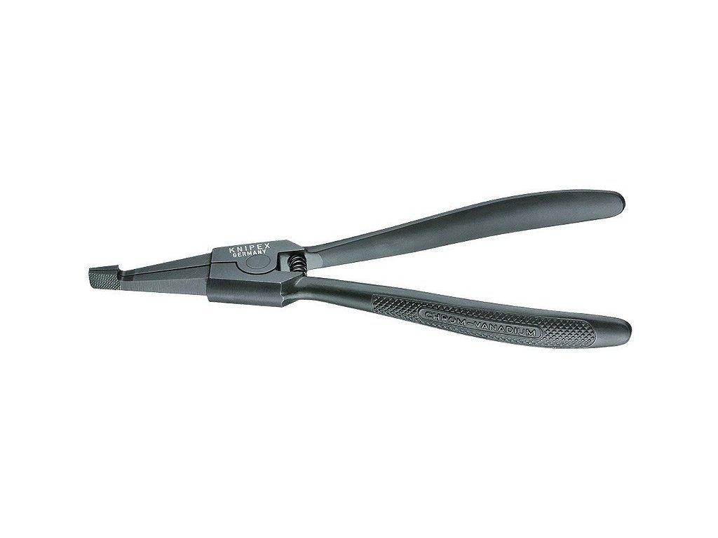 Vnější přímé kleště na pojistné kroužky. Délka 170 mm. Kleště mají vratnou pružinu. K montáži pojistných kroužků bez montážních otvorů.
